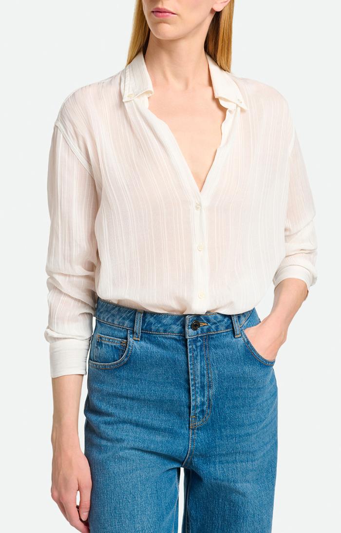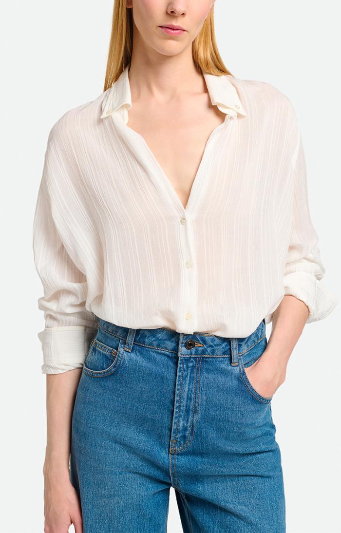 The Druyat shirt is an essential part of the women’s wardrobe, an obvious piece that can be elegantly and simply associated with all your looks. With its long sleeves and shirt collar, it plays the purity card. This shirt can be combined with jeans or a skirt, depending on your mood.