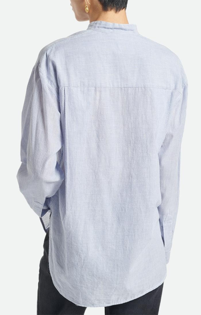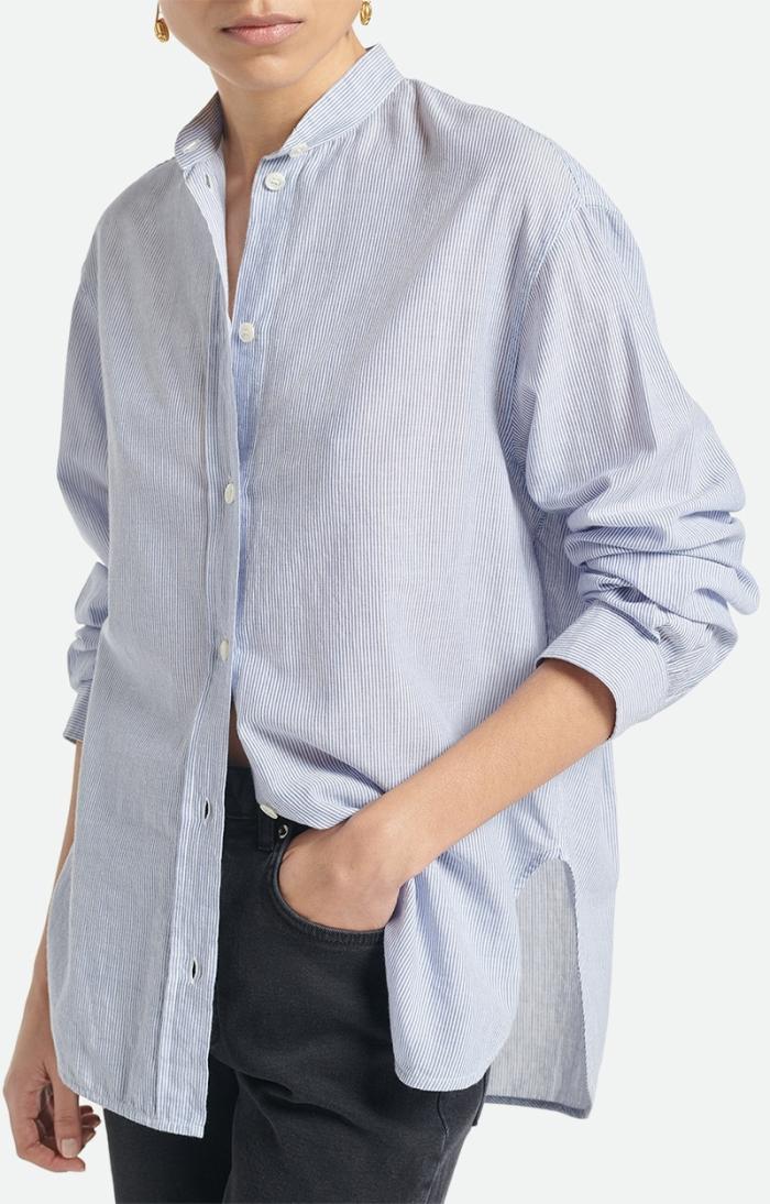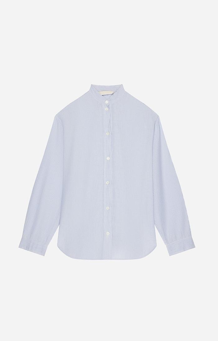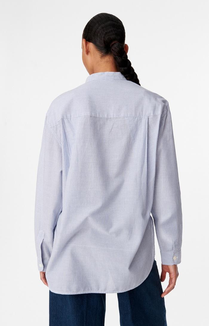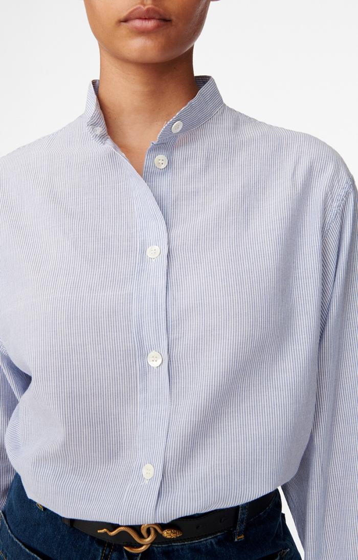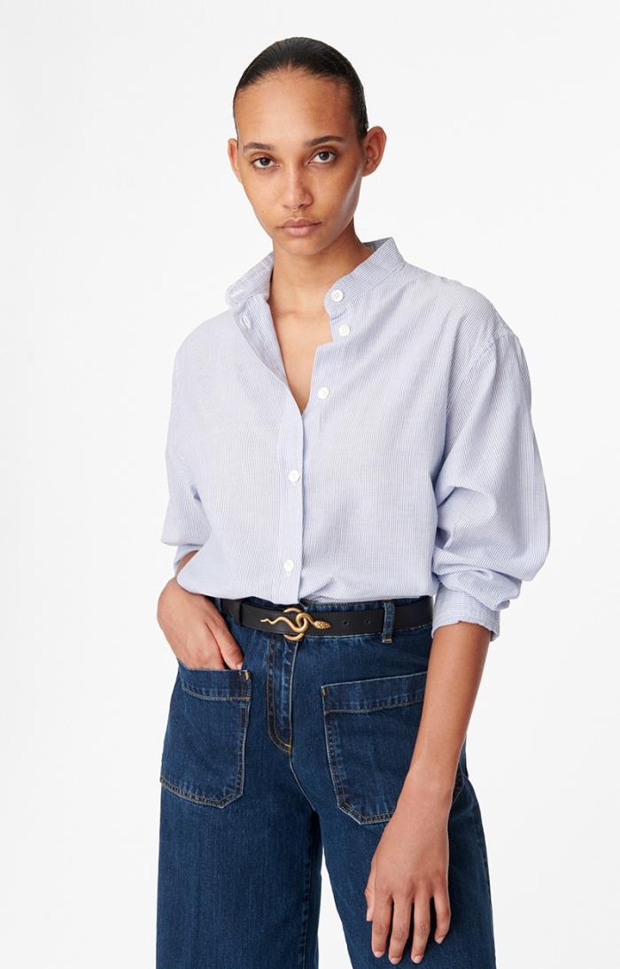 The timeless Lidiane shirt is an essential in a feminine wardrobe. This pinstriped cotton shirt with button down collar is ideal for a masculine-feminine look.