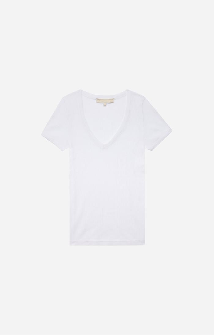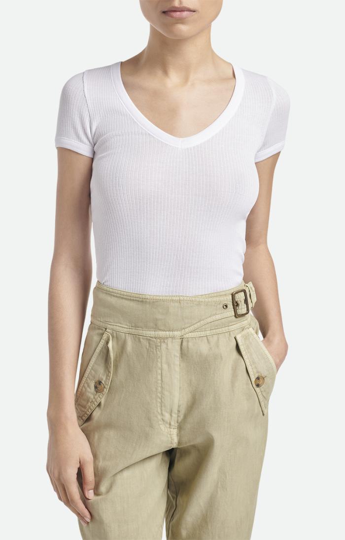 Delicate, close-fitting T-shirt. With its V-neck enhancing the cleavage and the short sleeves highlighting the shoulders, our Loulou T-shirt is the second skin you’ve always dreamed of.