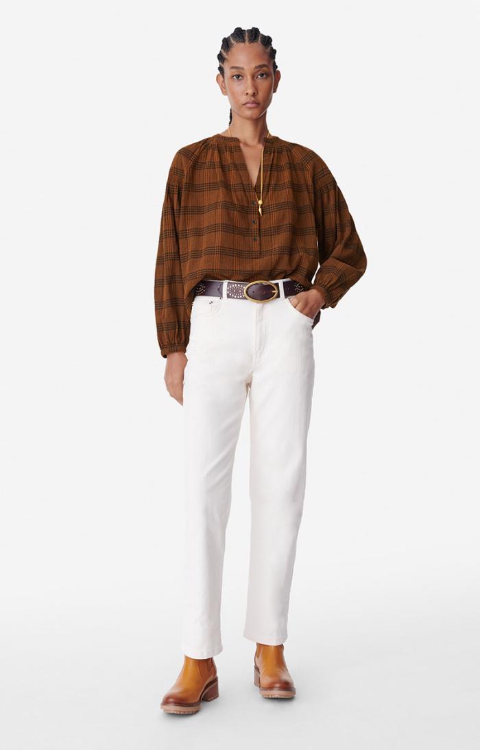 An iconic Vanessa Bruno blouse, the Nipoa design is the essential par excellence. With an airy cut, this blouse has a slightly dropped shoulder, volume enhanced by well-placed gathers, and a buttoned V-neck. Made in a cotton, it can be worn with jeans or with a petticoat-style skirt for a folksy look.