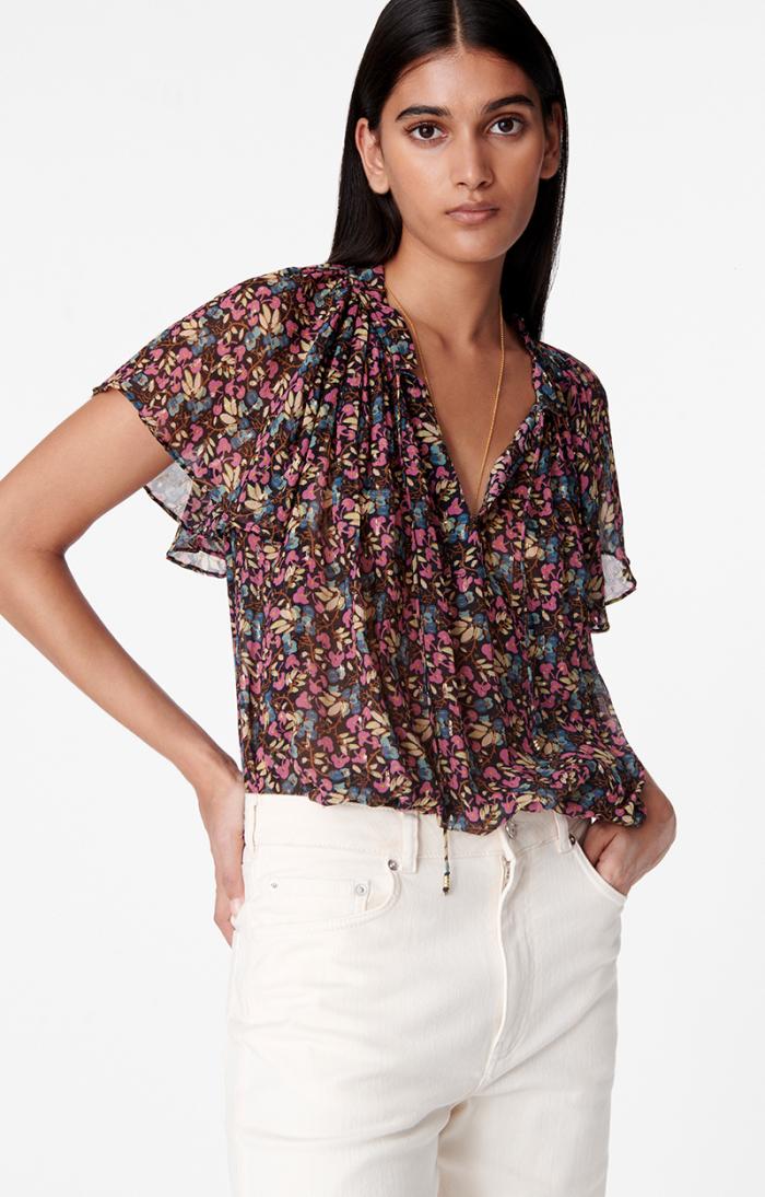 Loose and subtly transparent, the Valentin blouse is perfect for summer. Its Tunisian collar and embroidery are sure to bring a folk style to your outfits. This ruffled piece has a slightly A-line shape and butterfly sleeves for an ultra-summery look.