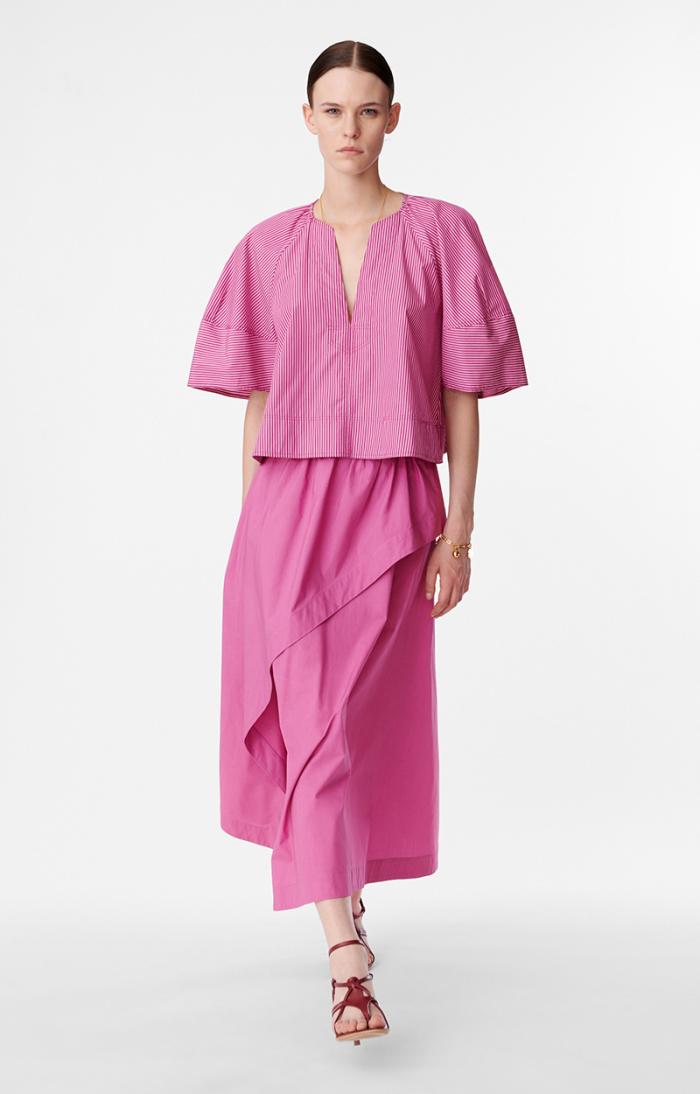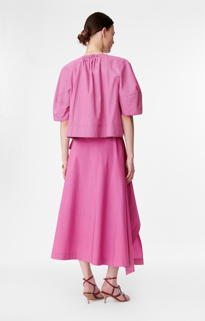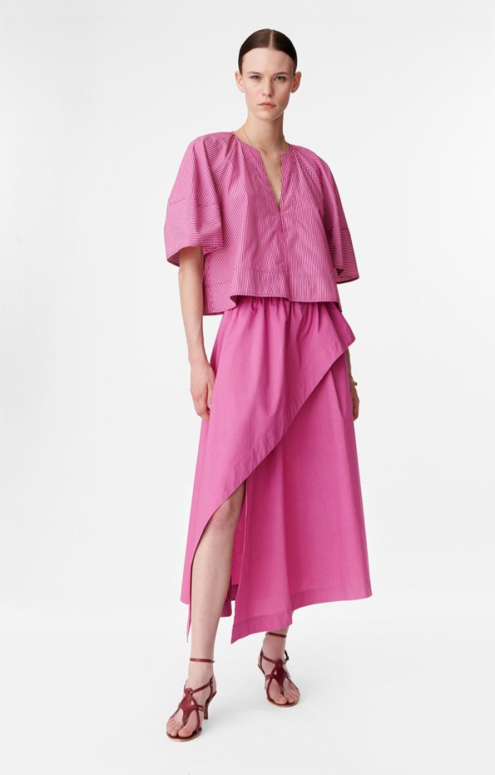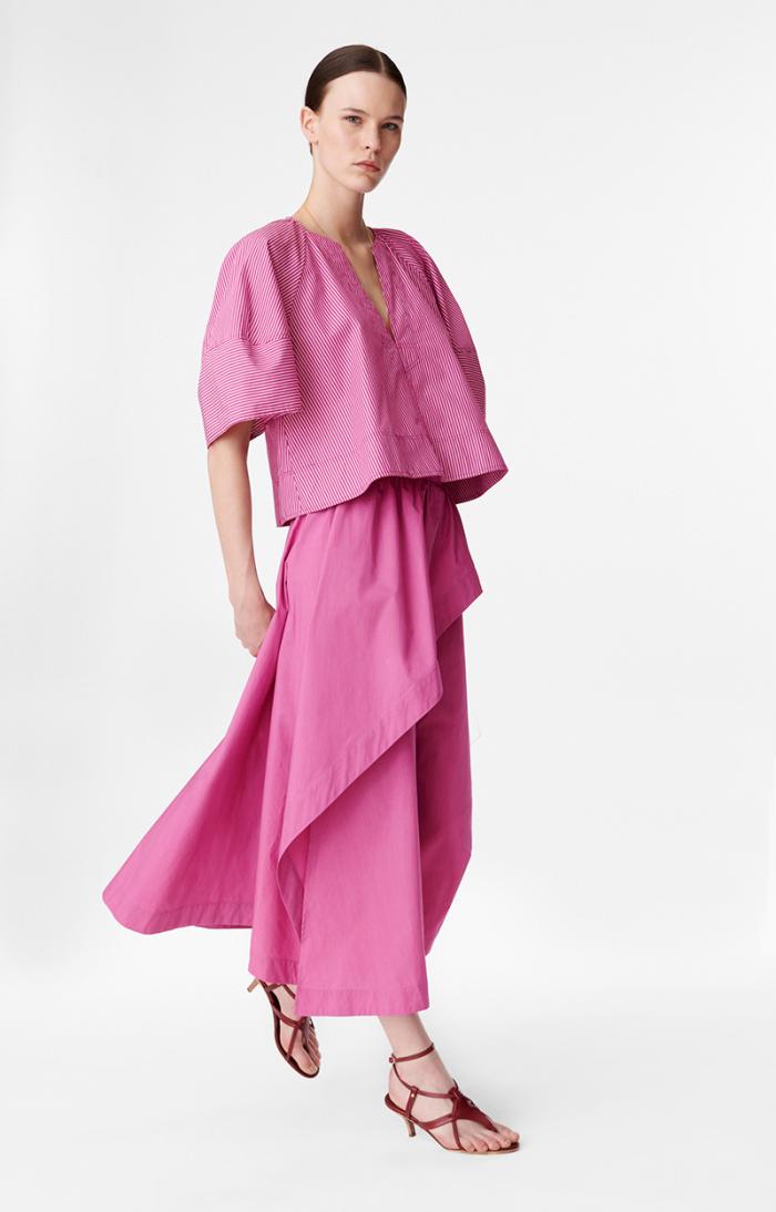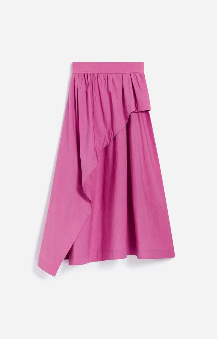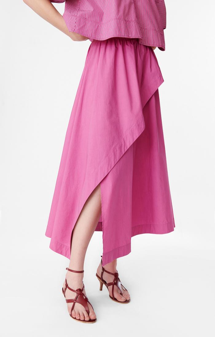 Made from cotton poplin, the Barbara skirt is fresh and light. Its asymmetrical structure, high waist and overlapping wrap-around panels will give you a unique, elegant look. Wear it with a simple T-shirt or blouse, as you wish.