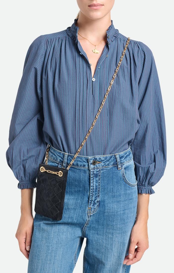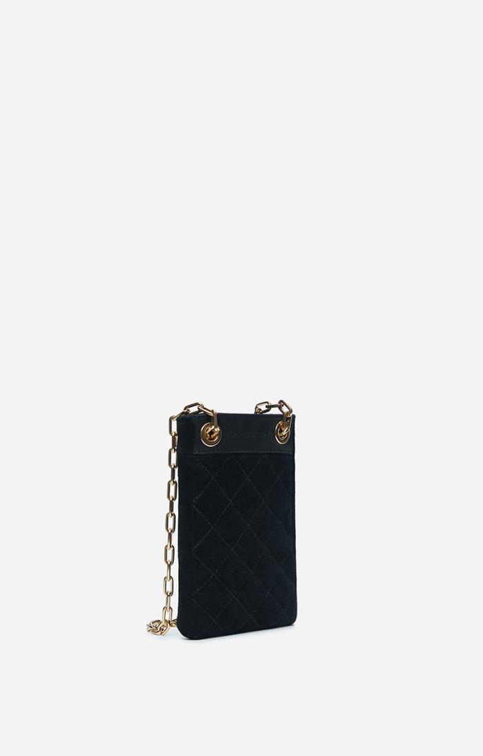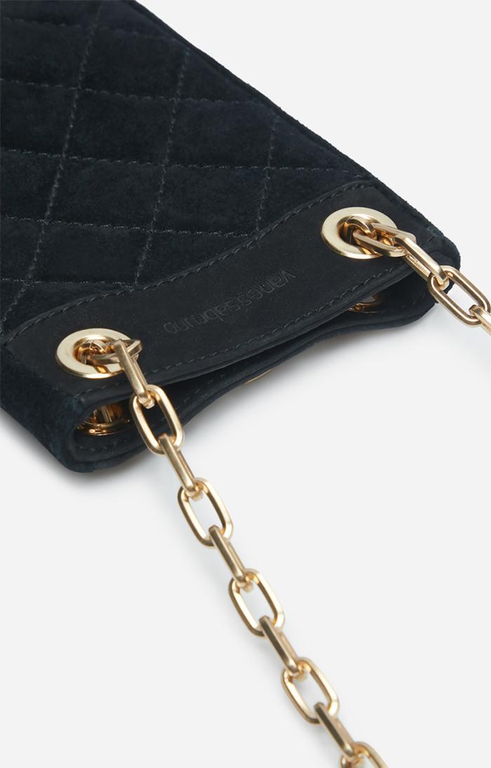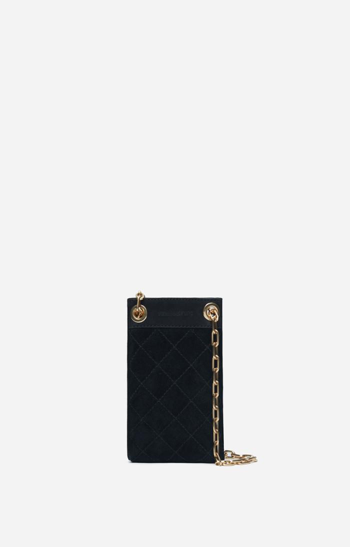 This season, Vanessa Bruno is expanding the Moon accessory range with a quilted suede phone pouch. Including all the key characteristics of this iconic Vanessa Bruno accessory, the XXS model, enhanced with a chain shoulder strap, will accompany you wherever you go.